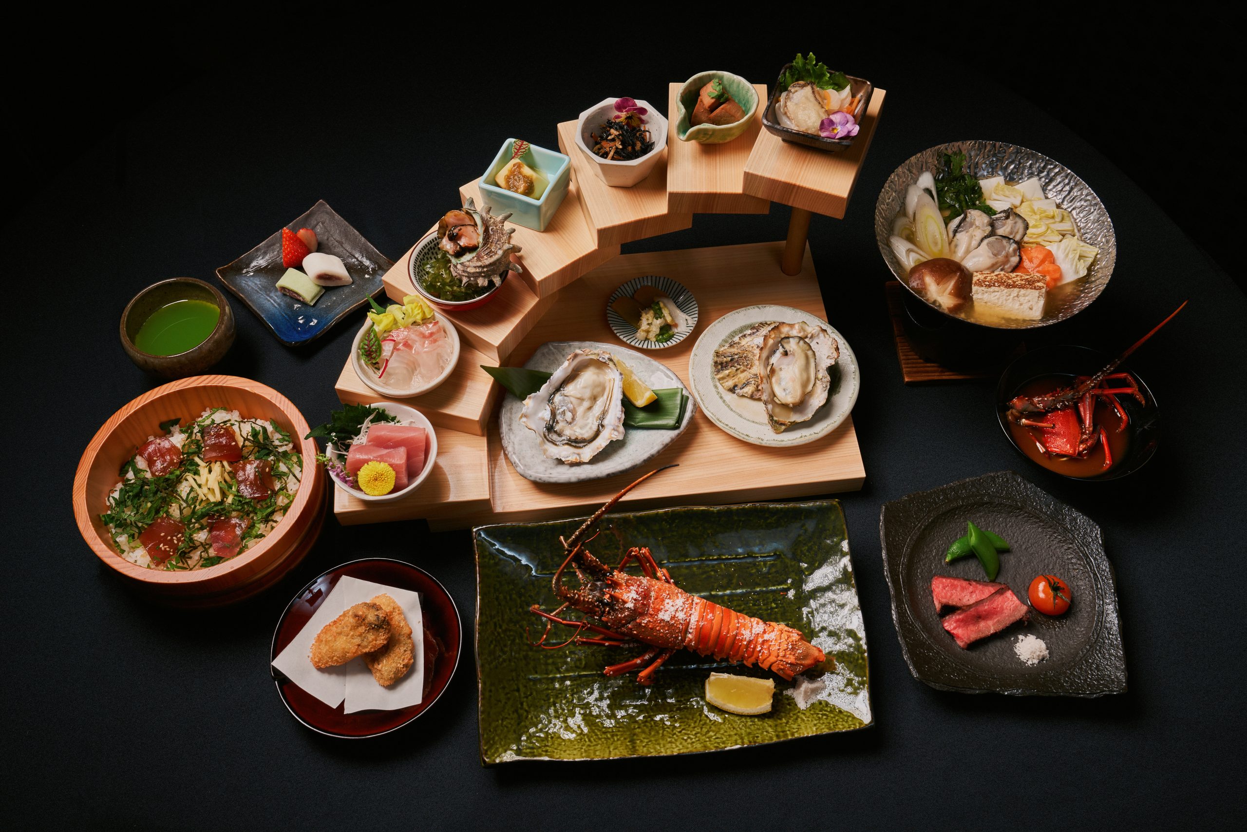 以靶子为首,使用伊势虾和伊贺牛等代表三重县的食材,用适合各自的烹饪方法完成。