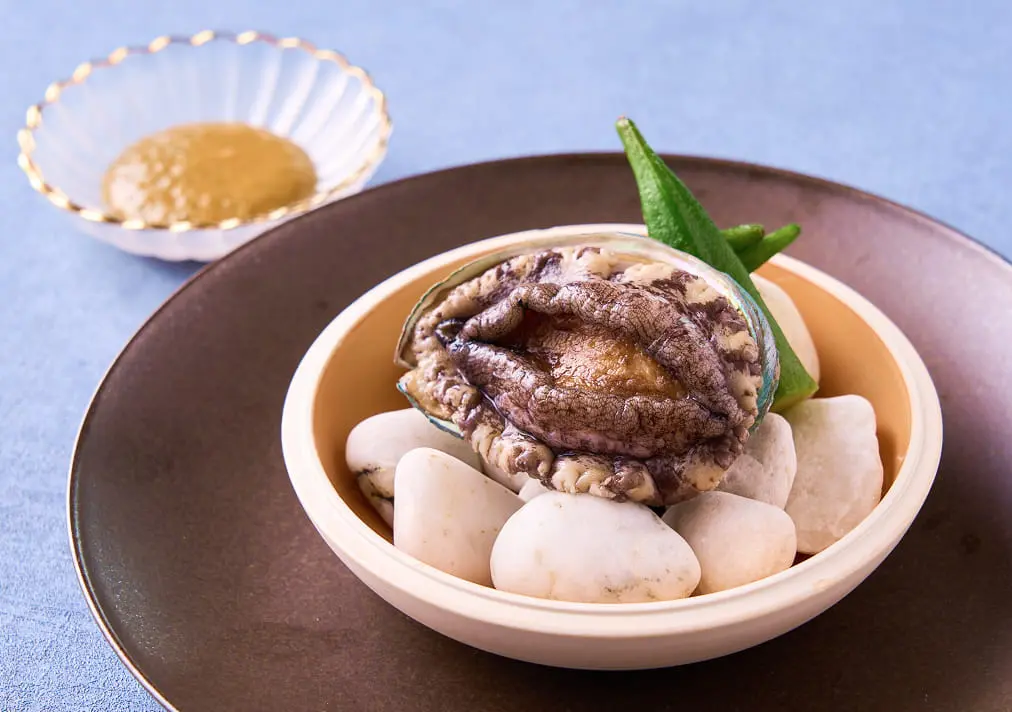 Ezo abalone with a luxurious scent and texture of the beach. By carefully cooking with a ceramic plate, you can make a soft and plump finish. Enjoy the style of the king of the sea.
