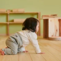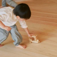 An area where you can play at ease while moving in a space surrounded by the warmth of wood.