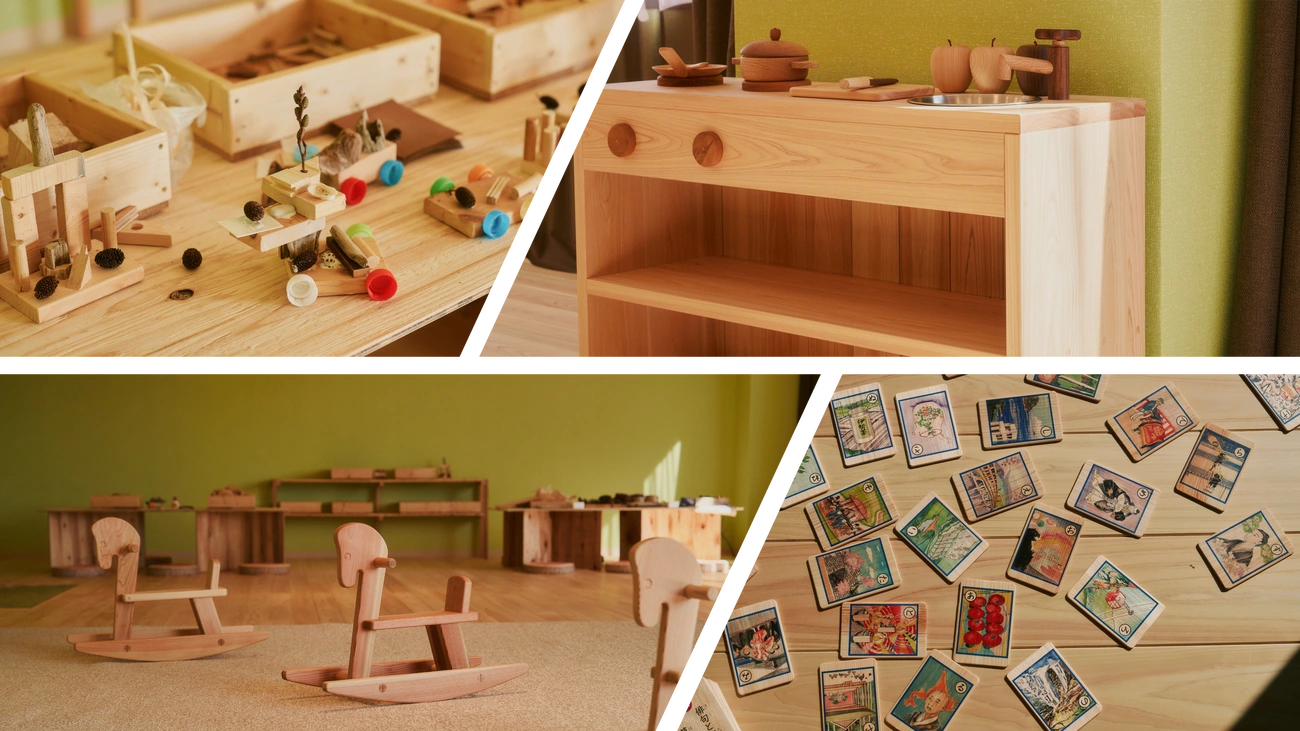 Wood from Mie Prefecture is used for wall materials and wooden toys.