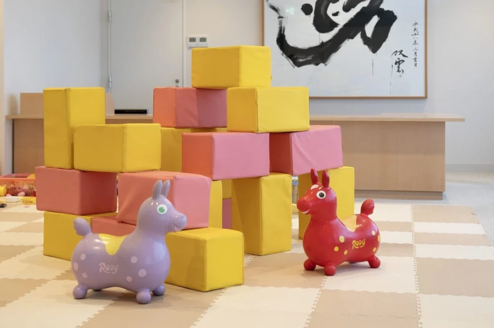 We also have a kids space where small children can play. We have toys, stuffed toys, picture books, etc.