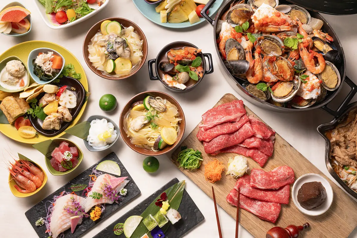 松阪牛や蝦夷あわび、旬の地魚をビュッフェスタイルで。お食事のお供となるワインや日本酒も、追加料金なしでお好きなだけお楽しみください。