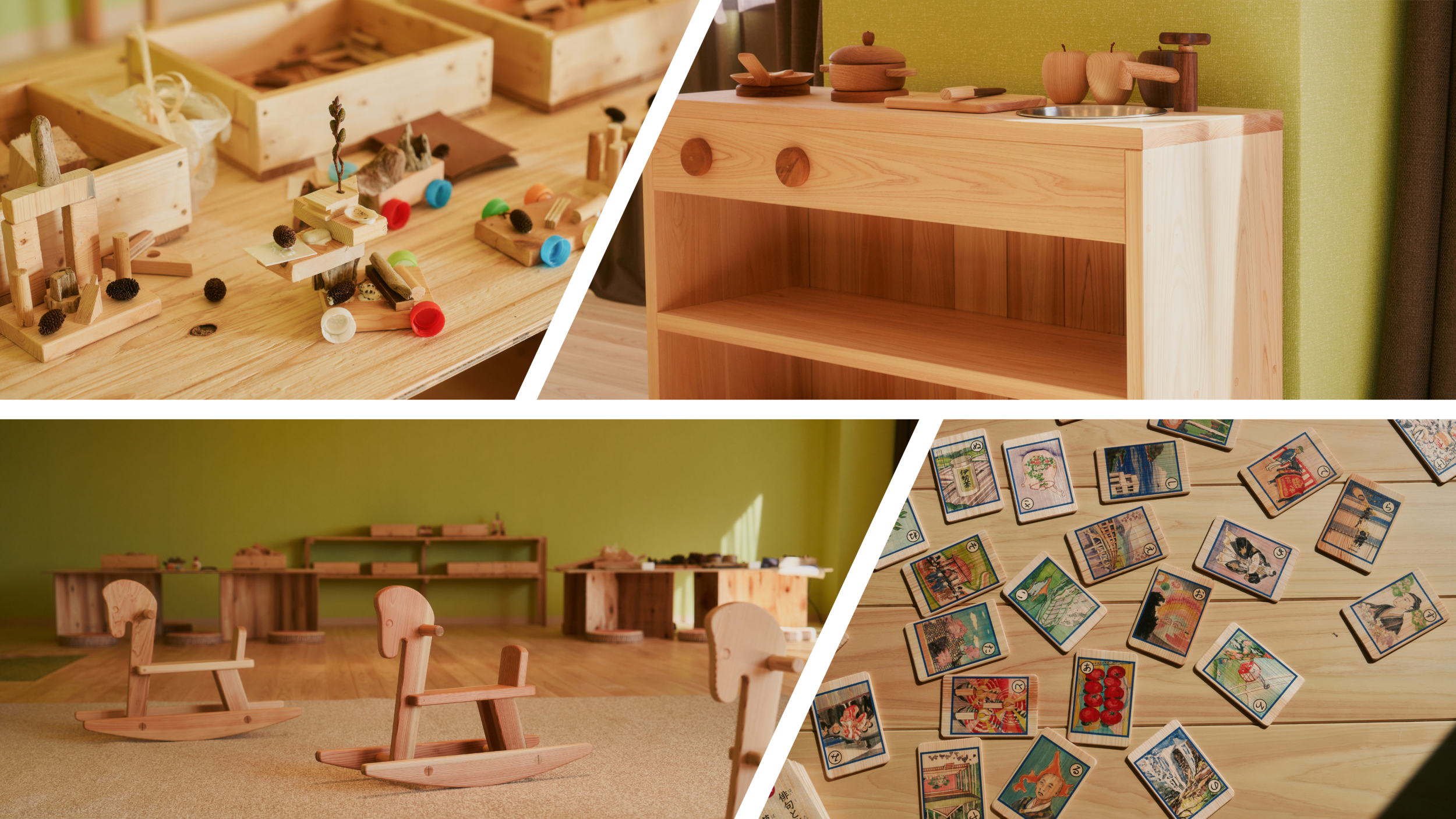 有許多溫柔的手工木製玩具和自由的構思可以享受的裝置。